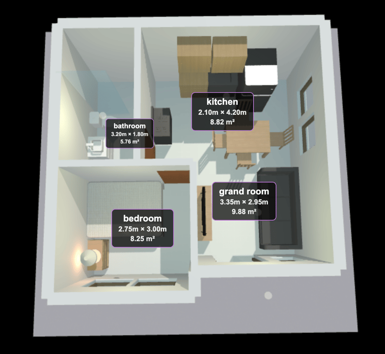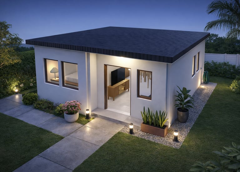 A compact 6 x 6 meter modern minimalist single-level home (36 sqm) designed for efficient living with clean lines and an uncluttered aesthetic. The layout features one bedroom and one bathroom, with a versatile great room that combines living and dining areas, and a well-equipped kitchen. With a 2.6-meter ceiling height and a square footprint, this home maximizes space through thoughtful open planning and a restrained material palette. Ideal for singles, couples, or as a compact retreat, offering comfort and simplicity in a modest, contemporary footprint.